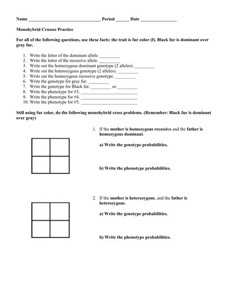 Read Online Monohybrid Crosses Practice Answers Key Kindle Editon