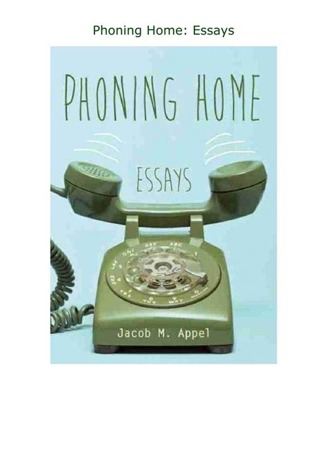 Read Online Phoning Home Essays Reader By Click Button. Phoning Home Essays it’s easy to recommend a new book category such as Novel, journal, comic, magazin, ect. You see it and you just know that the designer is also an author and understands the challenges involved with having a good book. You can easy klick for detailing book and you can read it online, even you can download it